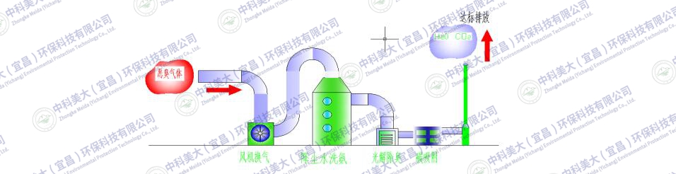 方案簡介:該套裝置結合多年經驗或數據,采用廢氣或粉塵集中處理,通過三級處理后,達到環(huán)境污染排放要求。先通過風機集中收集,經水洗塔噴淋除去部分氨分子或粉塵,水幕除塵裝置利用氨易溶水特性,在前期通過降塵處理同時,去除一部分氨氣,收集下來的氨水再加入生產線循環(huán)再利用,以達到零排標準。再通過光解處理NH3/H2S /CO等污染氣體,光解能高效去除揮發(fā)性有機物(VOC)、無機物、硫化氫、氨氣、硫醇類等主要污染物,以及各種惡臭味,脫臭效率高,脫臭效果大大超過國家1993年頒布的惡臭污染物排放標準(GB14554-93)和《廣東大氣污染物綜合排放標準》(DB44/ 27-2001)。最后通過活性碳纖維吸附處理達到排放要求。